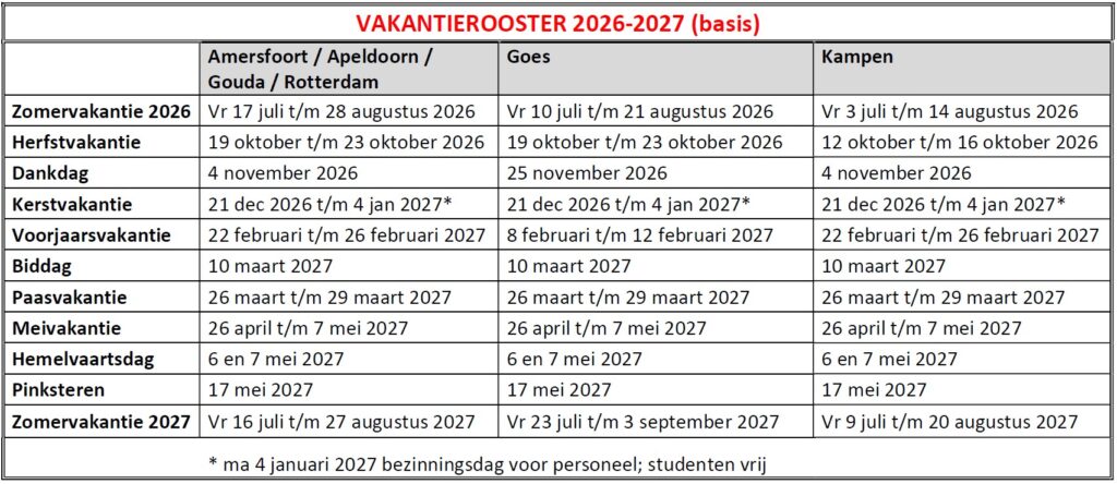 Hieronder vind je het vakantierooster voor schooljaar 2026-2027.