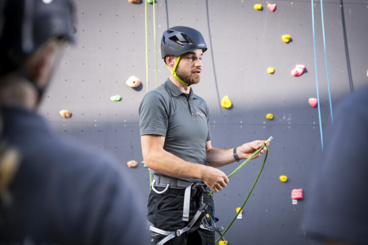 Foto’s: docent Van der Weide tijdens een sportles klimmen.