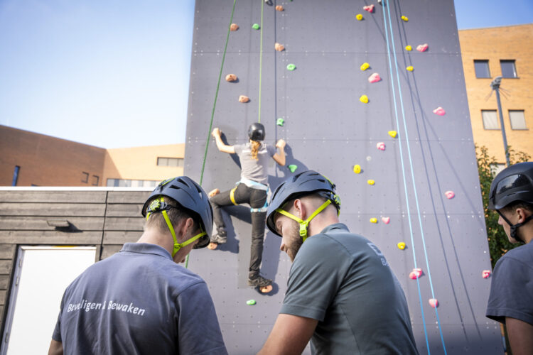 Voor het uniformberoep moet je stevig in je schoenen staan. Van der Weide: “Om het vak van beveiliger goed te kunnen uitvoeren, heb je een sterke theoretische basis nodig. Tijdens deze lessen oefenen we zoveel mogelijk in de praktijk. Je wordt fysiek gevormd door sportlessen en leert mensen aanspreken op een passende manier in verschillende situaties. Door agressiehanteringslessen ontwikkel je zelfvertrouwen. Daar heb je karakter en doorzettingsvermogen voor nodig: je wordt echt gevormd als persoon.”